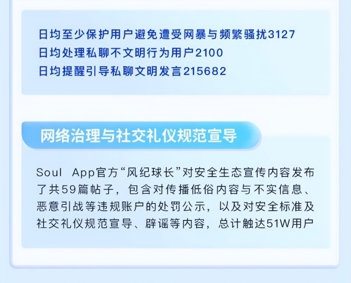 此外,Soul深知,一个健康的社区不能仅靠平台单打独斗。因此,Q3持续推进“社区共建共治”理念,吸引超7.8万名用户加入内容推荐官或风纪委员行列,日均活跃共建者达5.1万人,贡献投票超2.2万次,成功孵化优质内容2900余篇。配合官方账号“风纪球长”发布的59篇安全科普内容,累计触达用户51万人次,真正实现了“人人参与、人人受益”的良性生态循环。